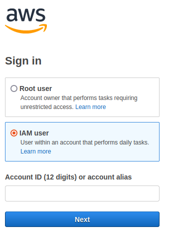 계정 아이디 혹은 계정 별명 입력, IAM user명,비밀번호 입력