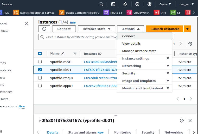 인스턴스 선택 ---> Actions 클릭 ---> Connect 클릭