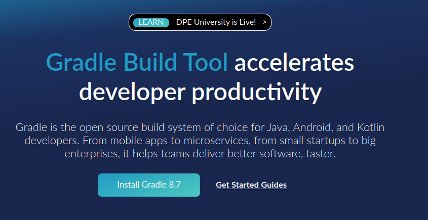 Find binaries and reference documentation for current and past versions of Gradle.