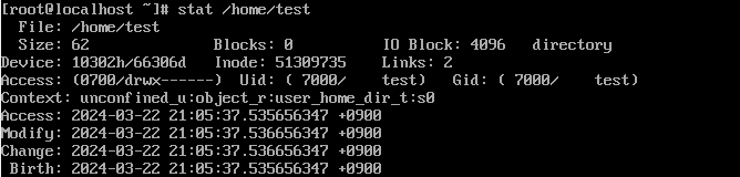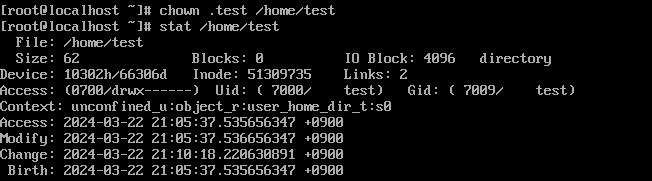 test 그룹의 gid를 변경한 뒤에 test 유저의 디렉토리가