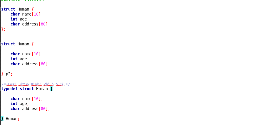 구조체 생성과 동시에 별칭 지정