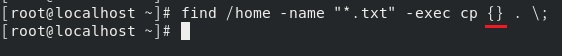 -exec 옵션에 cp 명령어를 사용해서 {} 안에 앞에서 검색된 결과 들어오고