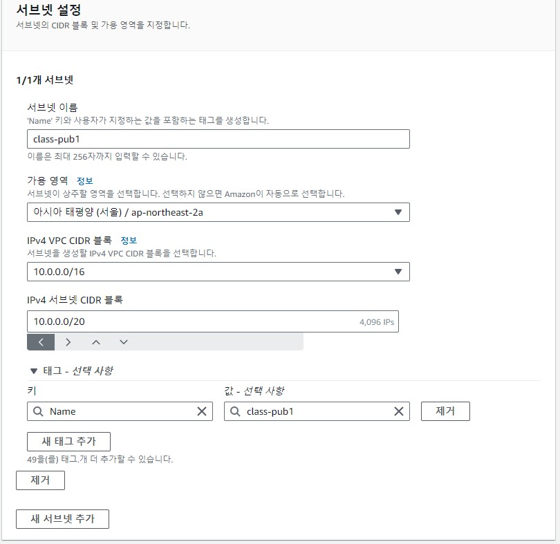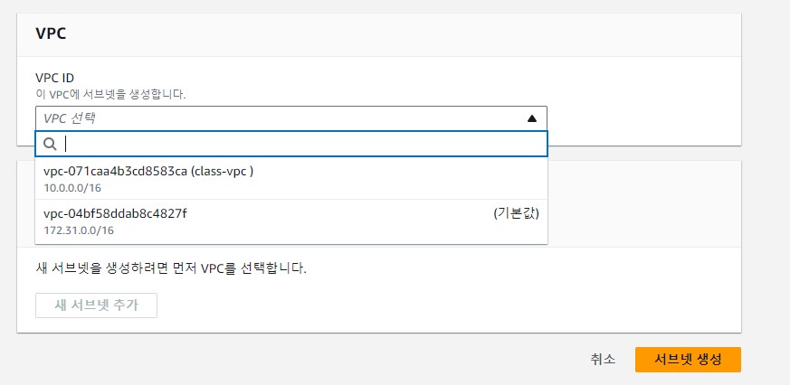 subnet을 생성할 vpc 선택