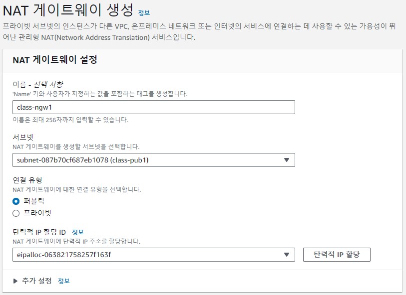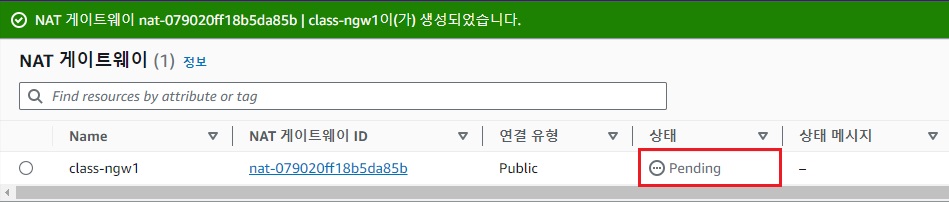 NAT 게이트웨이는 생성시 시간이 조금 걸린다.
