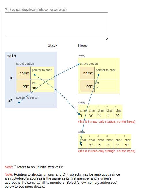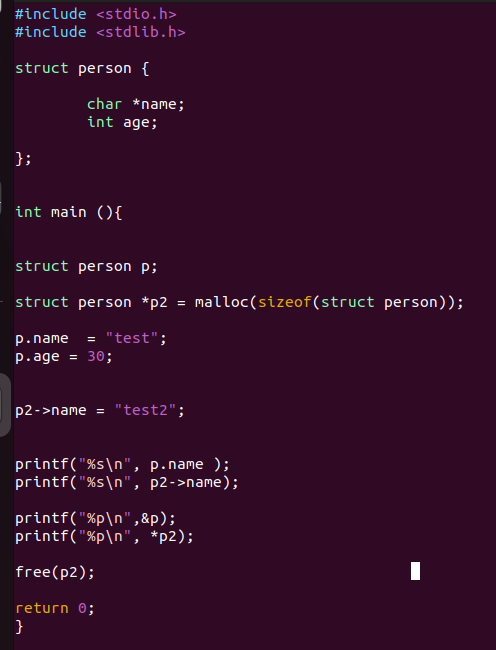 struct 타입의 포인터 변수 p2는 heap에 생성된