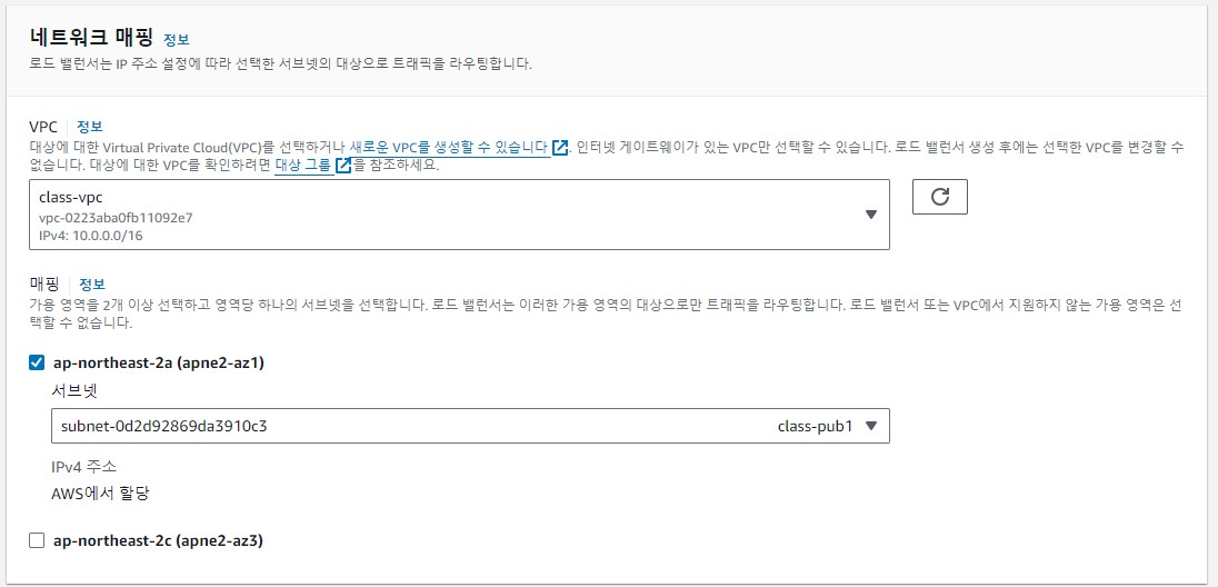 매핑할 네트워크 VPC 및 서브넷을 선택