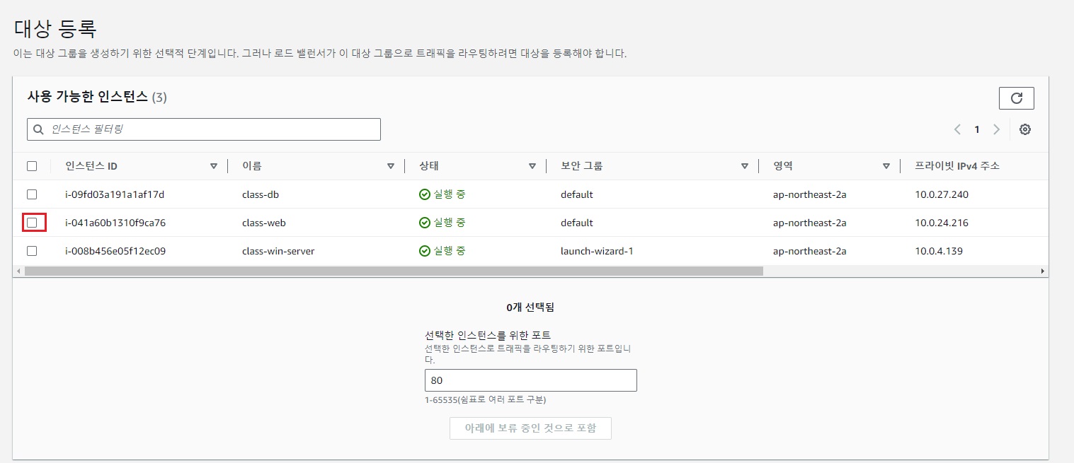 대상 그룹에 포함할 인스턴스 선택
