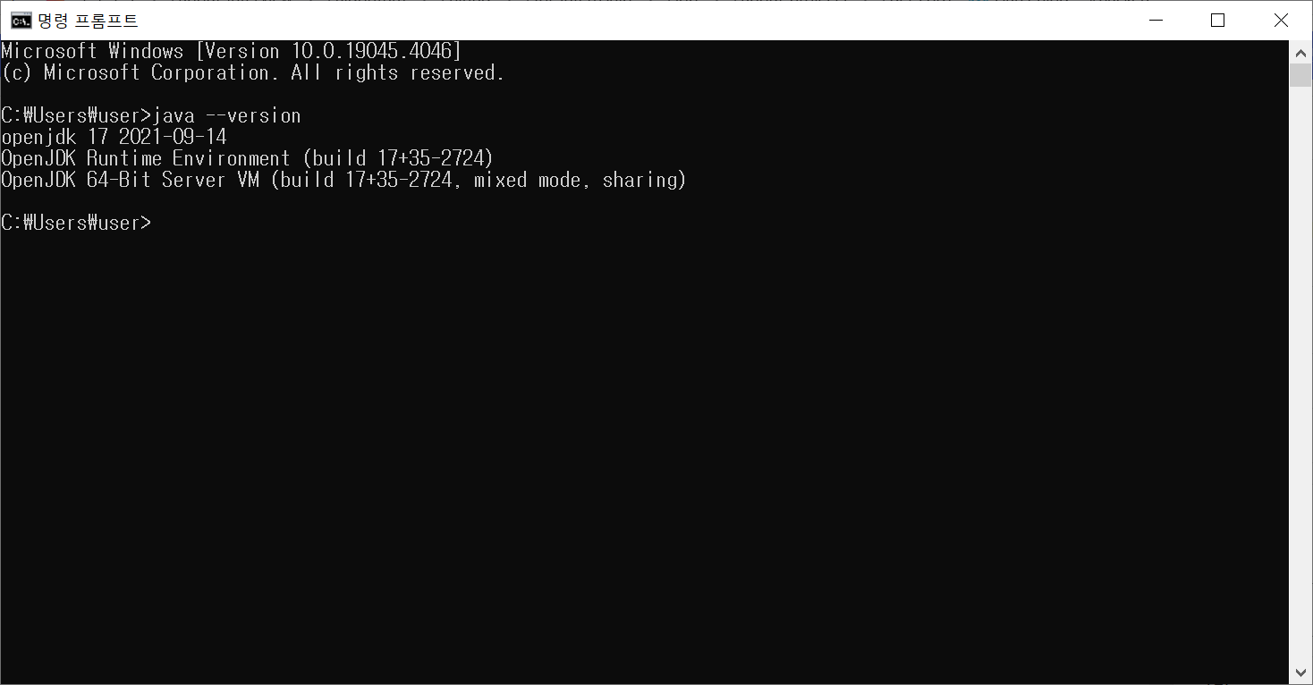 4. cmd에서 java 버전을 확인할 수 있다면 성공입니다.