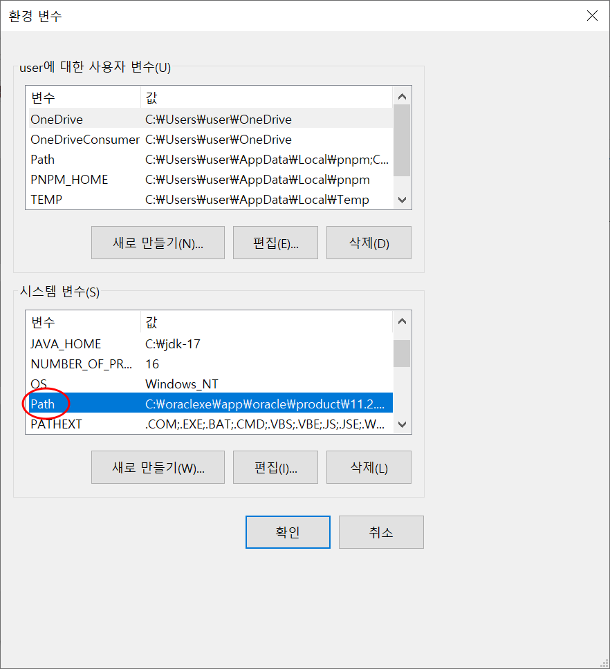 경로를 추가해주기 위해 Path를 누르고 편집 버튼을 클릭합니다.