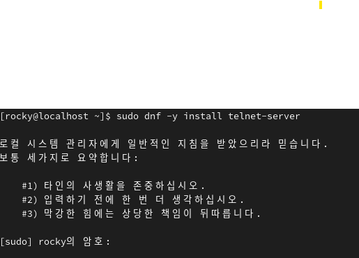 sudo dnf -y install telnet-server 로 설치