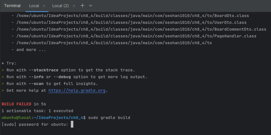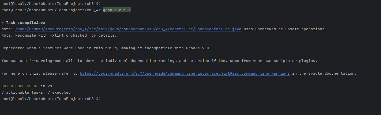 해당 프로젝트 파일의 디렉토리 터미널에서 build를 하면