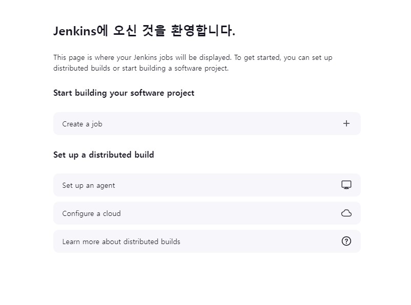 jenkins 화면이 보이면 성공이다.