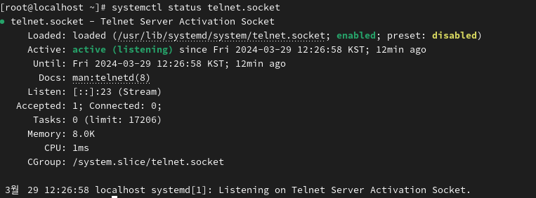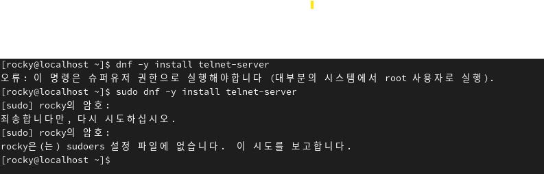 sudo dnf -y install telnet-server 로 설치