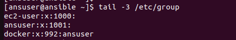 ans 유저는 docker group에도 속해있다.
