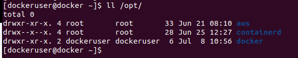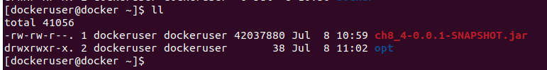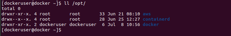 이번에는 /opt/docker 라는 dockeruser 소유의 디렉터리에