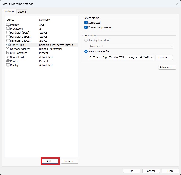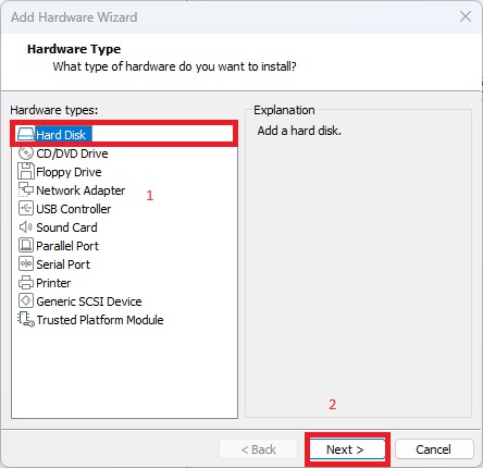 hard disk 선택
