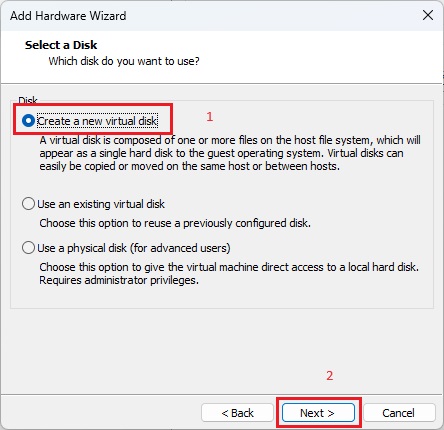 새로운 vm disk 생성 선택