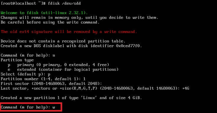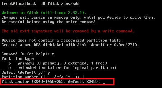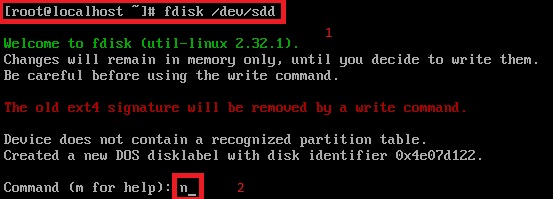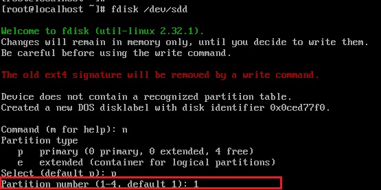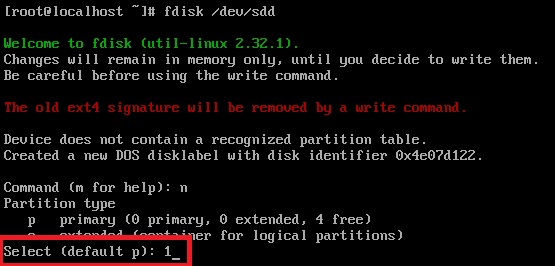 파티션을 나누기 위해 fdisk 명령어로 파티션을 나눌 디스크 선택후