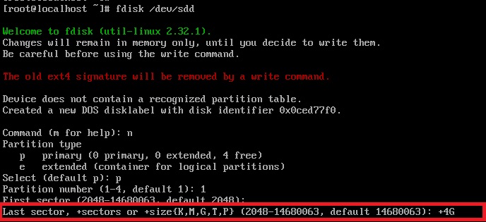 마지막 섹터는 할당할 용량 입력