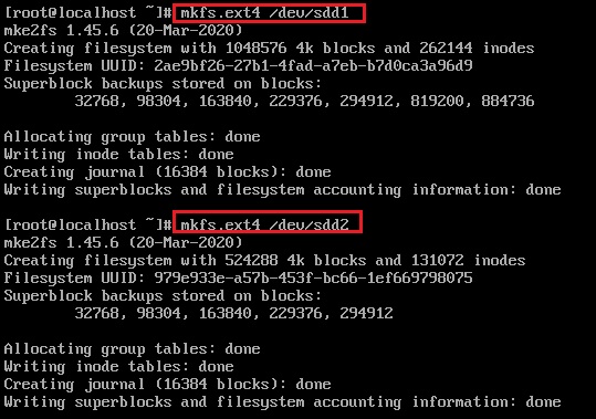 파티션을 mkfs 명령어를 사용하여 포맷해준다.