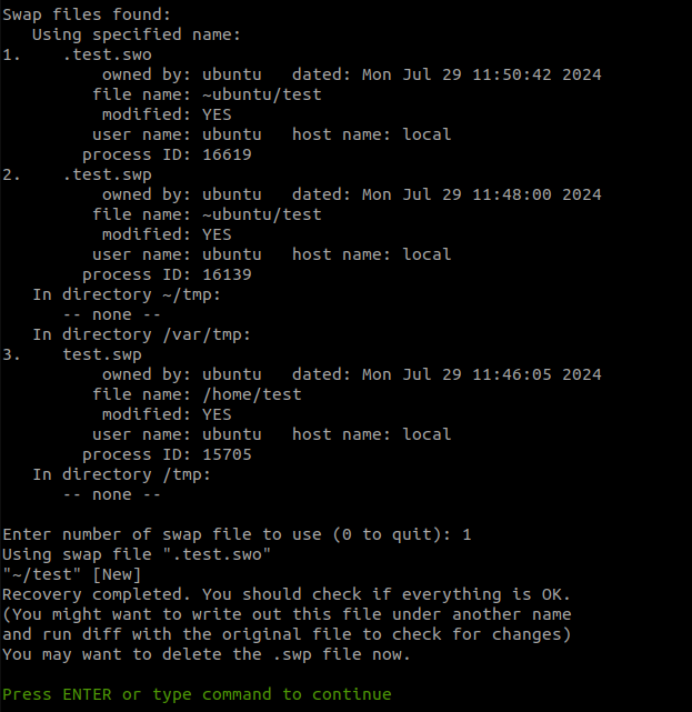 vi -r test를 입력