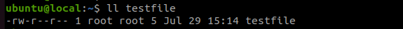 testfile 파일은 root 유저의 소유이고, 그룹소유자 또한 root 이다.