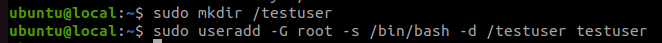 testuser가 root그룹에 속해 있는 것을 확인할수 있다.