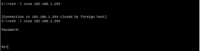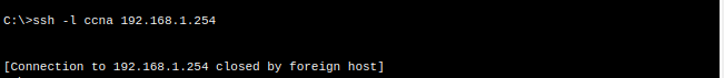 ssh -l ccna 192.168.1.254 입력