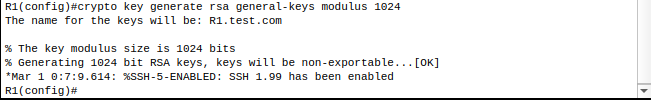 1. crypto key generate rsa general keys modulus 1024