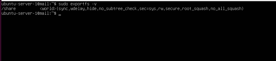 exportfs -v를 입력해 서비스가 가동중 인지를 확인