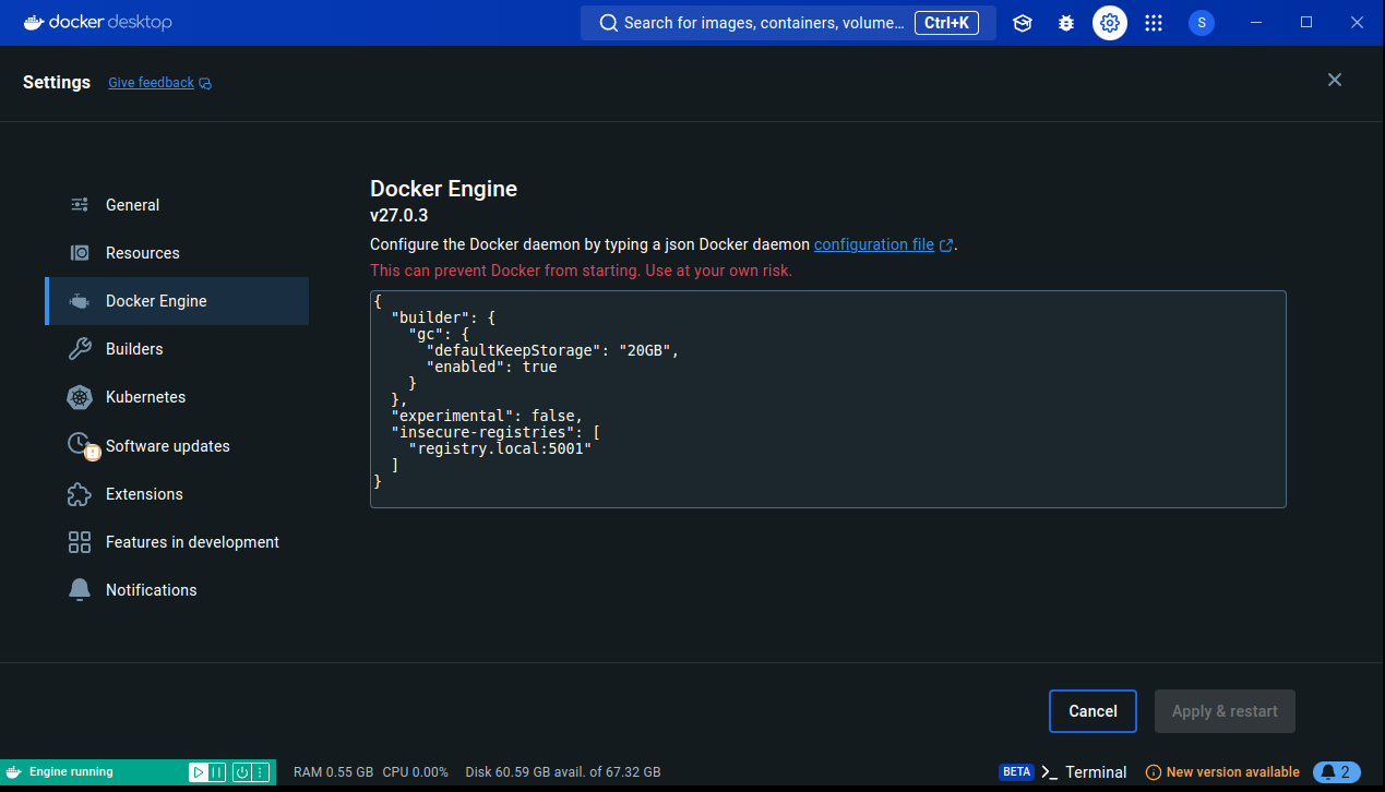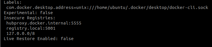 docker info 명령어로 registry.local:5001이 정상적으로 등록된것을 확인할수 있다.