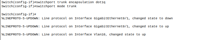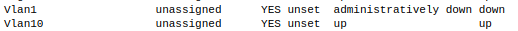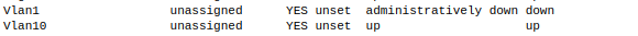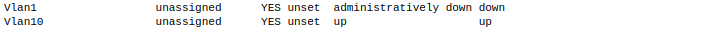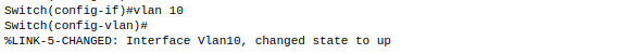 vlan 10을 생성하면은 state가 up 상태로 변경된다.