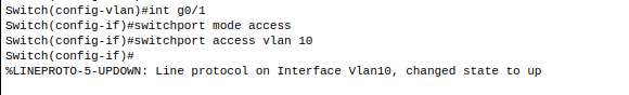 int g0/1가 vlan 10을 사용하지 않도록 설정