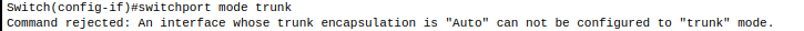 switchport mode trunk 명령어를 입력하니 에러 발생