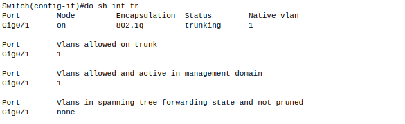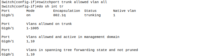 sh int tr 명령어를 입력하기 vlan 1,10 이 allowed vlan으로 되어 있다.