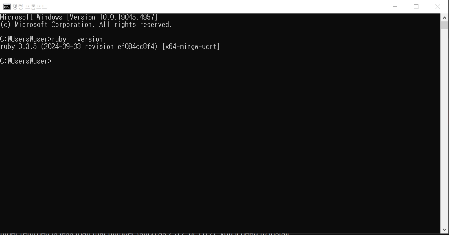 위와 같이 ruby 정보가 출력되면은 설치 성공