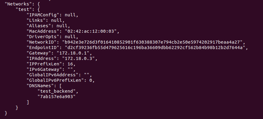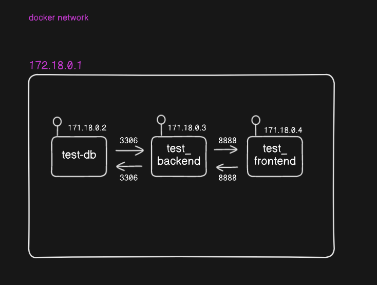 db와 backend 컨테이너가 실행되고 있는 test network에서