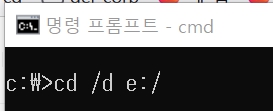 cd /d <이동할 드라이브>를 입력