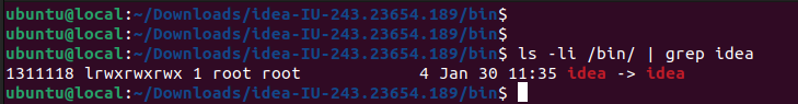 /bin 디렉토리에 있는 소프트 링크인 idea 파일을 확인해 보니