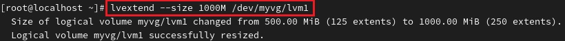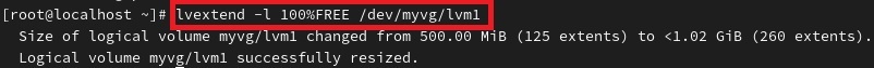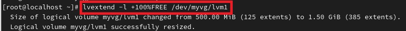 lvm1의 용량을 100%만큼 늘려준다.(여기서 100%는 해당하는 논리볼륨을 기준으로 하는 %인거 같다.)