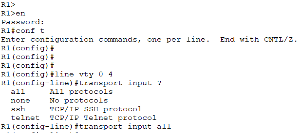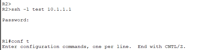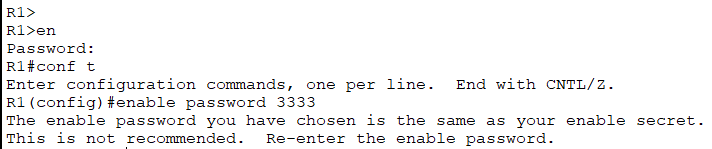 R1에서 enable password 라는 명령어를 이용해서 관리자 모드로 들어가기