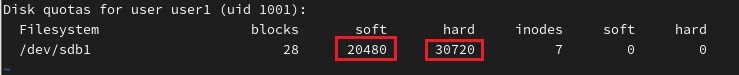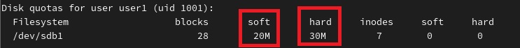 edquota -u 명령어를 이용해서 설정해준 soft의 용량을 넘으면은