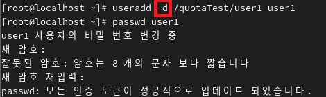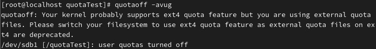 /quotaTest 디렉토리로 이동해서 quotaoff -avug 입력