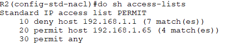 access list(ACL)의 마지막에는 deny any (standard일 경우)가