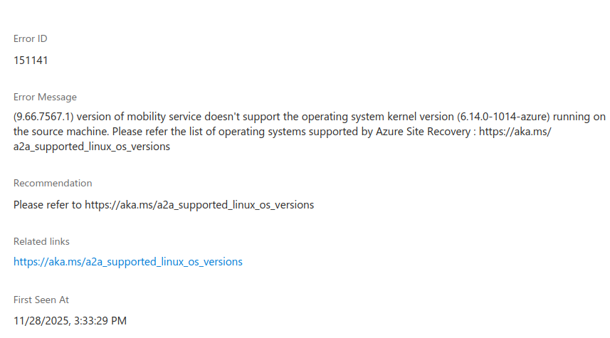 linux의 특정 커널을 지원하지 않아서 Site Recovery가 정상적으로