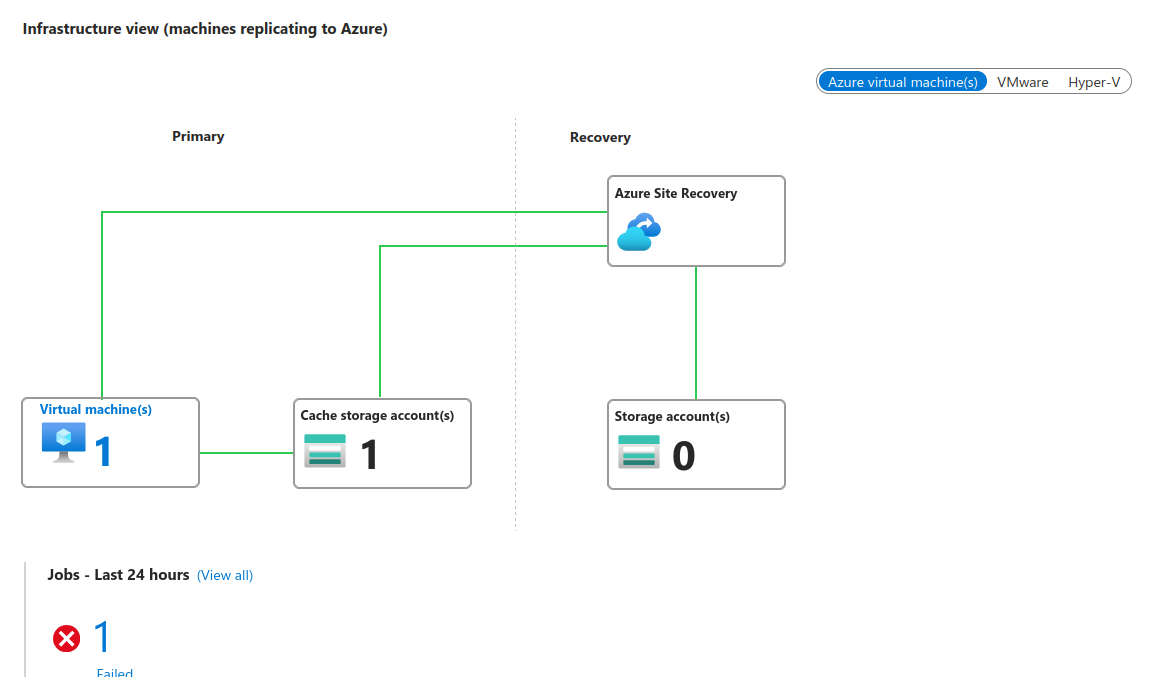 Geography간의 가용성을 구현하기 위해 site recovery를 하려는