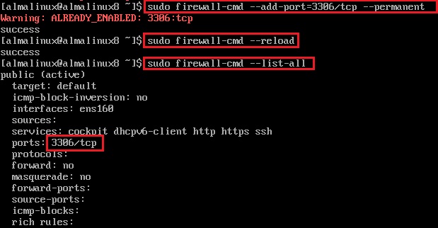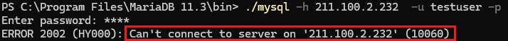 mariadb에 대한 방화벽 설정이 되어있지 않다.