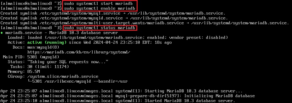 ---> dnf 명령어로 다운받을때는 mariadb-server 라는 이름으로 설치했지만