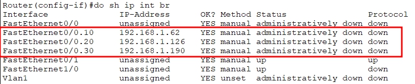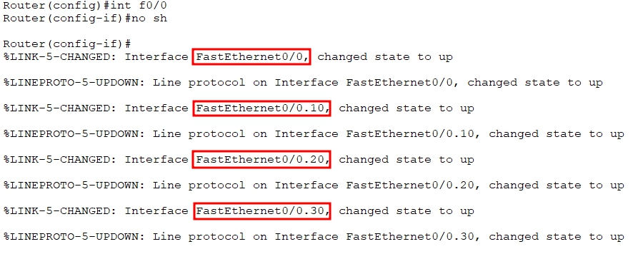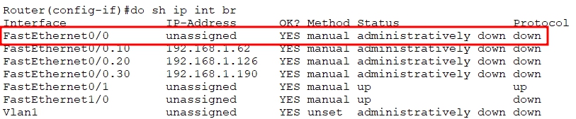 interface f0/0을 켜주니 sub-interface도 같이 켜진다.