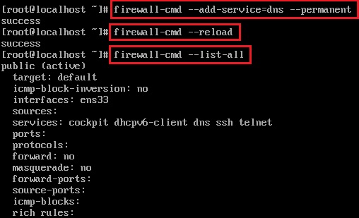firewall-cmd 명령으로 dns를 방화벽 설정해주고